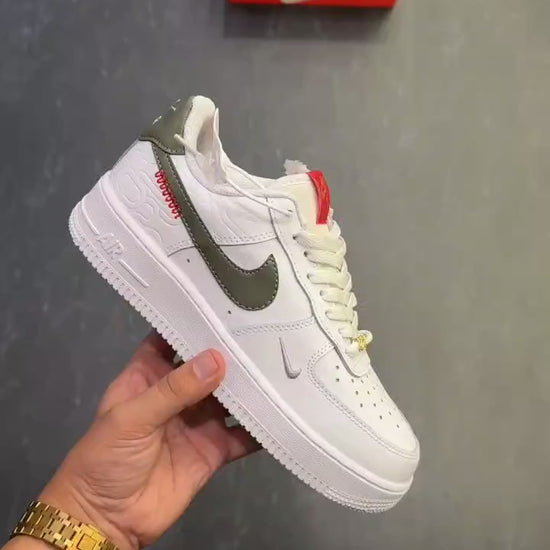 Accents of forest green at the heel tab offer subtle contrast, while the signature AF1 sole provides durable traction and that familiar, all-day comfort. Stitch details in crimson on the heel area further elevate the artisanal feel, making this a pair for collectors, culture lovers, and sneakerheads alike.