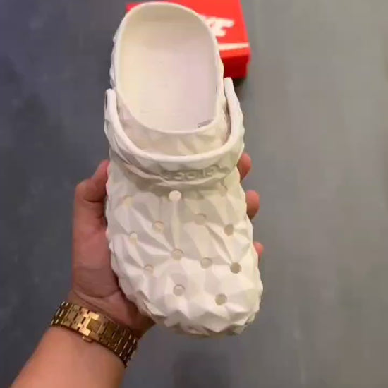 Crafted from lightweight Croslite™ foam, the Echo Clog offers unmatched comfort and durability. The uniquely 3D-molded geometric exterior, paired with bold black perforation accents, creates a look that is both futuristic and effortlessly stylish. Whether you're hitting the streets or relaxing at home, these clogs elevate your everyday style with a sharp, sculpted silhouette that turns heads.