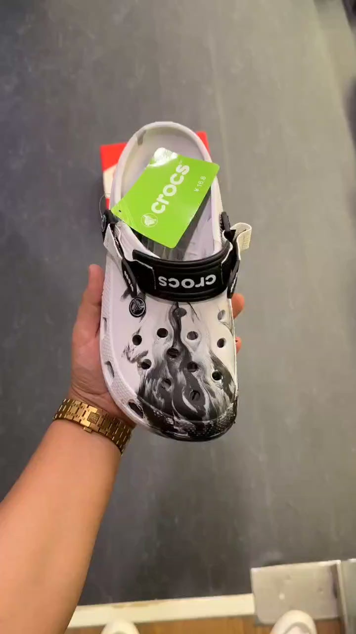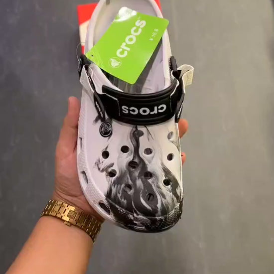 Original Crocs Unisex Clog - White with Black Paint Splash Design